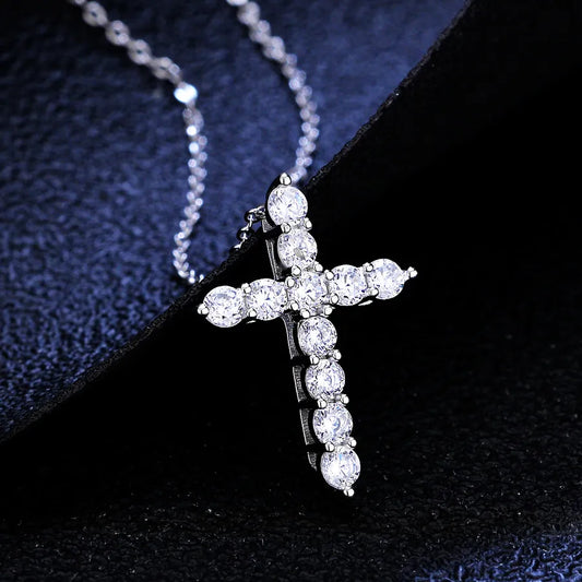 925 Sterling Silver Zircon cable chain Inlay Cross Pendant Necklace