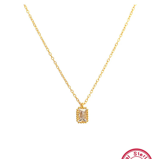 925 Sterling Silver Zircon Plating Inlay Rectangle Pendant Necklace