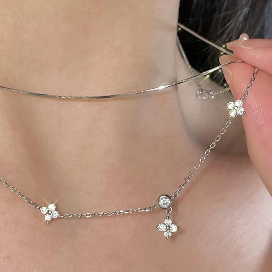 925 Sterling Silver Zircon Inlay Flower Pendant Necklace