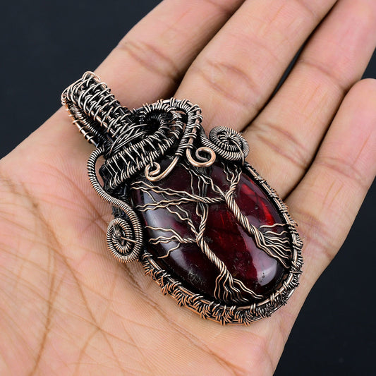 Red Ruby Gemstone Copper Wire Wrapped Necklace