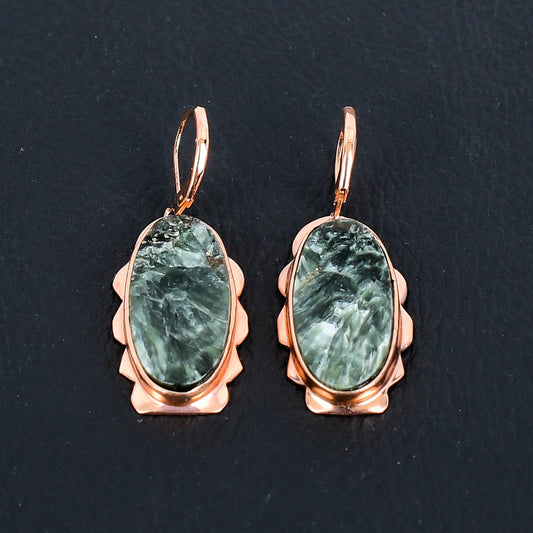 Green Seraphinite Gemstone Copper Leverback Earrings