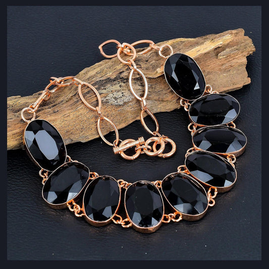 Pink Rose Quartz Gemstone Copper Cuff Bracelet
