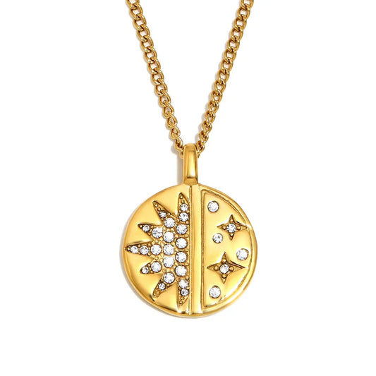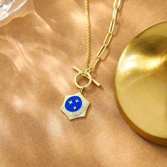 Gold-Plated Enamel Star & Moon Zircon Pendant Necklace