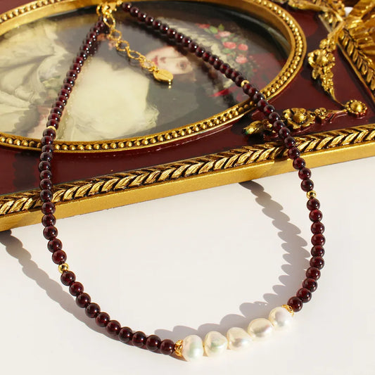 Gold Beaded Geometric Stone & Pearl Jewelry Set