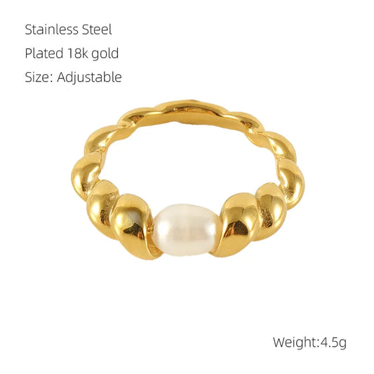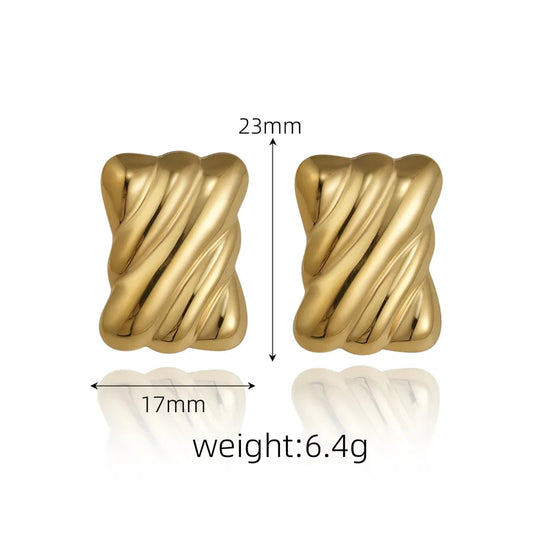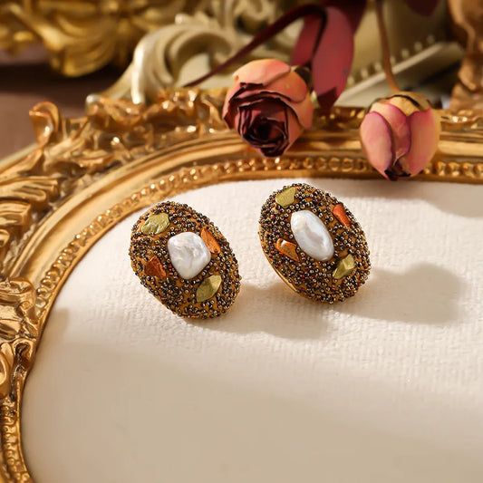 18K Gold Geometric Freshwater Pearl Stud Earrings