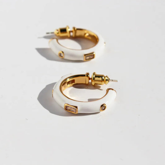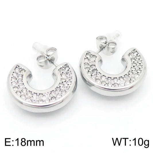 Gold C-Shaped Geometric Rhinestone Ear Studs