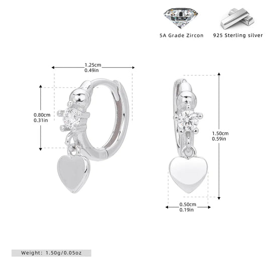 Sterling Silver Clear Zircon Heart Drop Earrings