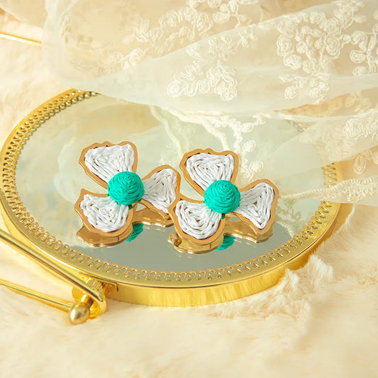 Gold-Plated Enamel Bear Heart Flower Earrings