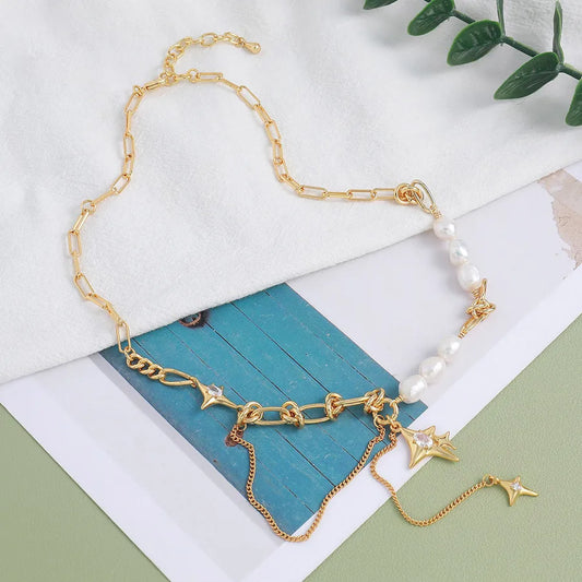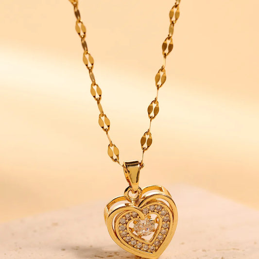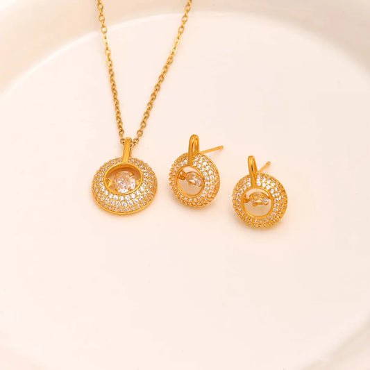 Gold-Plated Copper Geometric Oval Pendant Necklace