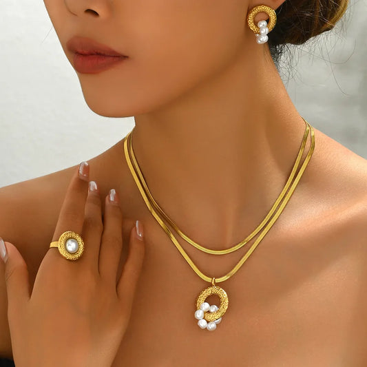 Gold Plated Stainless Steel Bracelet & Necklace Set