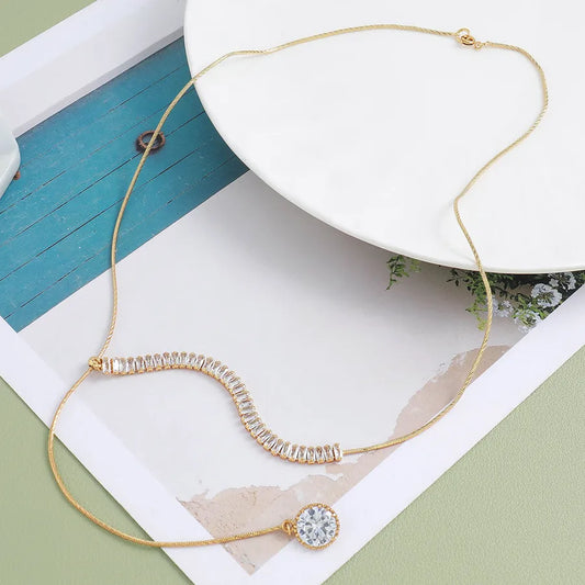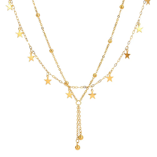 Gold Plated Moon & Butterfly Zircon 3-Layer Necklace