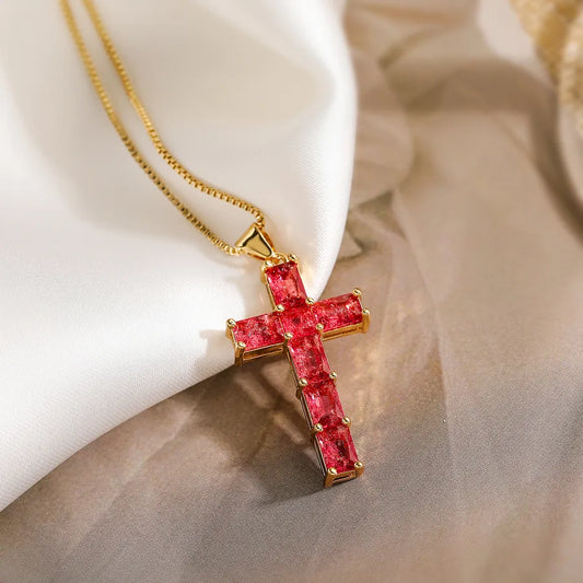 Gold-Plated Zircon Cross Pendant Necklace