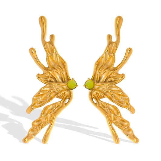 Gold Butterfly Opal Stud Earrings