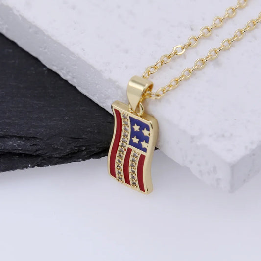 Gold-Plated Enamel Flag Pendant Necklace