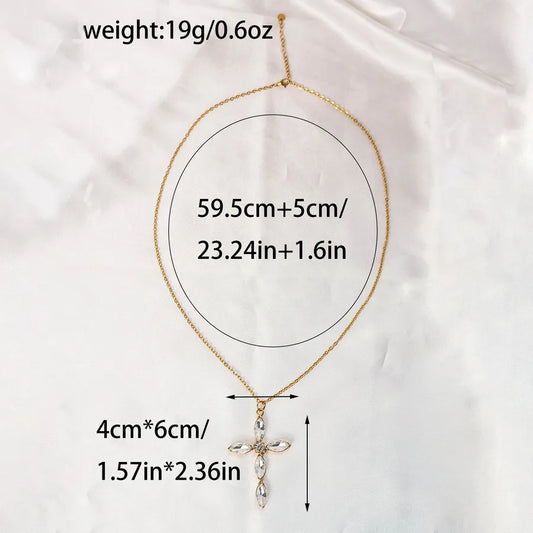 Gold Plated Rhinestone Cross Pendant Necklace