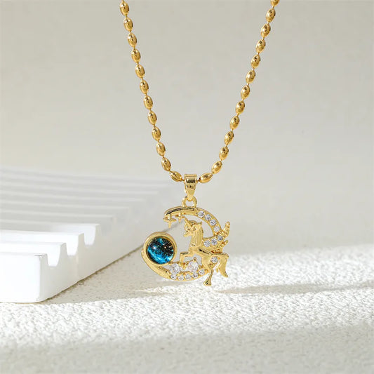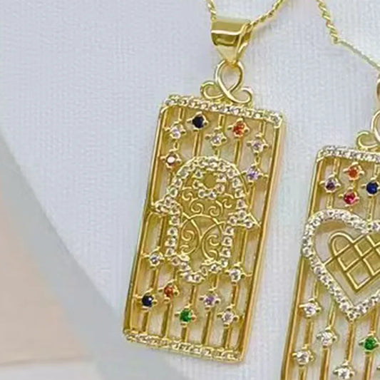 18K Gold-Plated Zircon Star & Heart Pendant Necklace