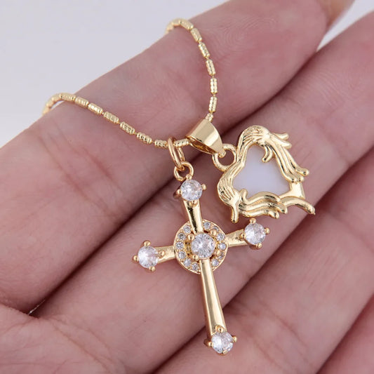 Gold Cross Heart Zircon Pendant Necklace