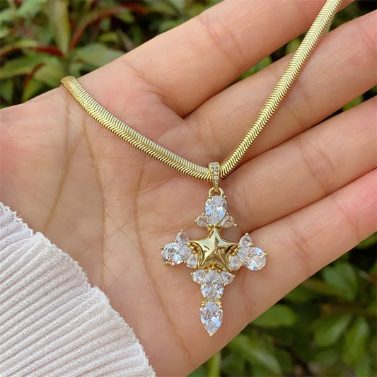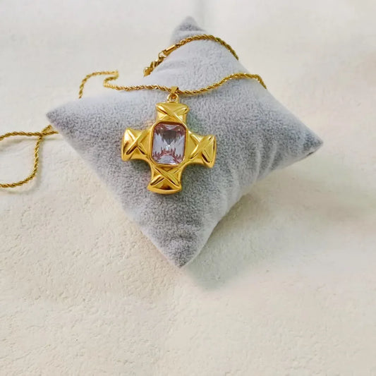 Gold Zircon Cross Pendant Necklace