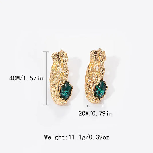 Gold-Plated Green Malachite Square Drop Earrings