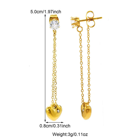Gold Heart Zircon Drop Earrings