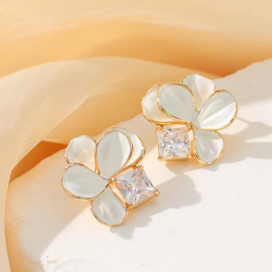 Gold Zircon Flower Drop Earrings