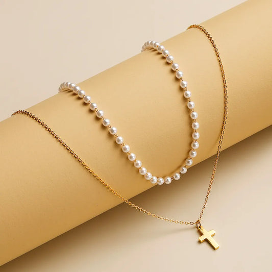 Gold Plated Cross Pearl Necklace