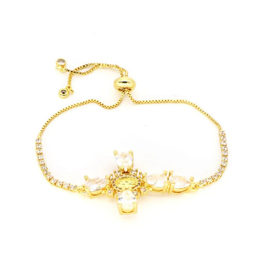 Gold-Plated Virgin Mary Zircon Cross Bracelet