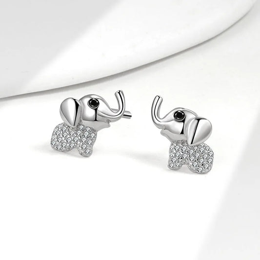 Gold Plated Sterling Silver Elephant Zircon Stud Earrings