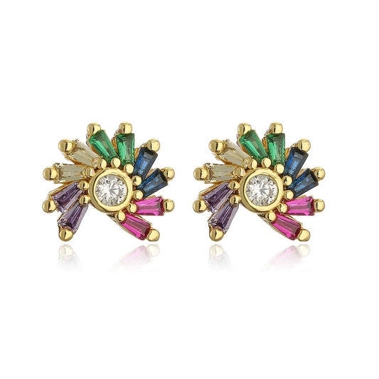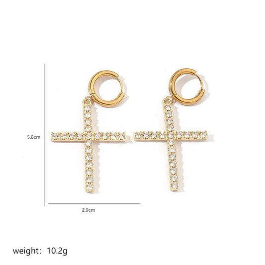 Gold-Plated Geometric Cross Zircon Ear Studs