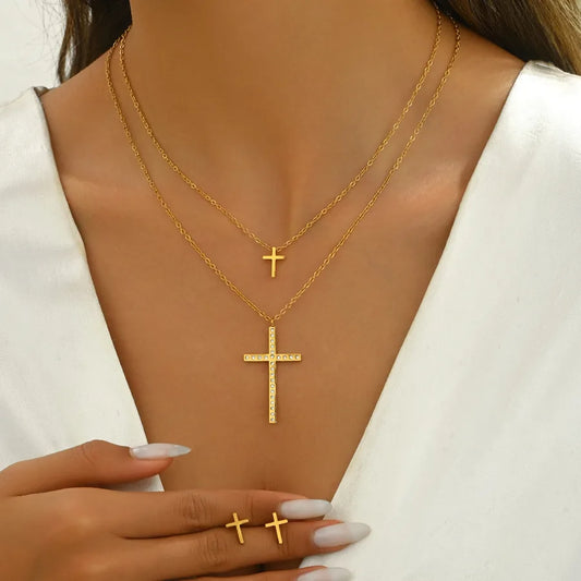 18K Gold Plated 3D Cross Stainless Steel Earrings Set
