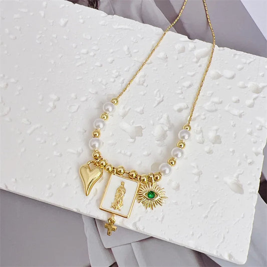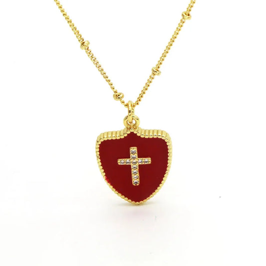 Gold-Plated Virgin Mary Cross Heart Zircon Pendant