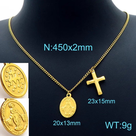 Gold-Plated Oval Cross Stainless Steel Bracelets