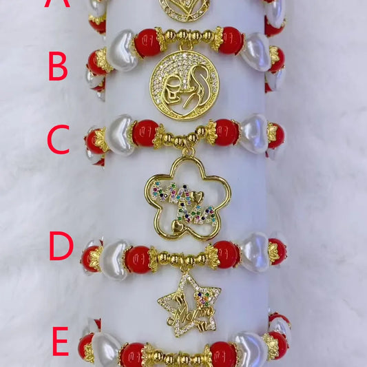 18K Gold Plated MAMA Heart Pearl Zircon Bracelet
