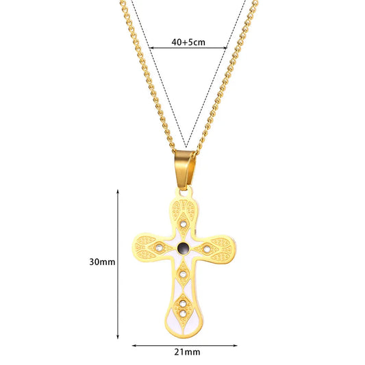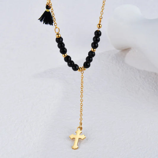 18K Gold-Plated Stainless Steel Cross Tassel Necklace