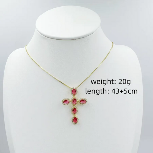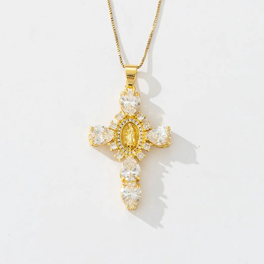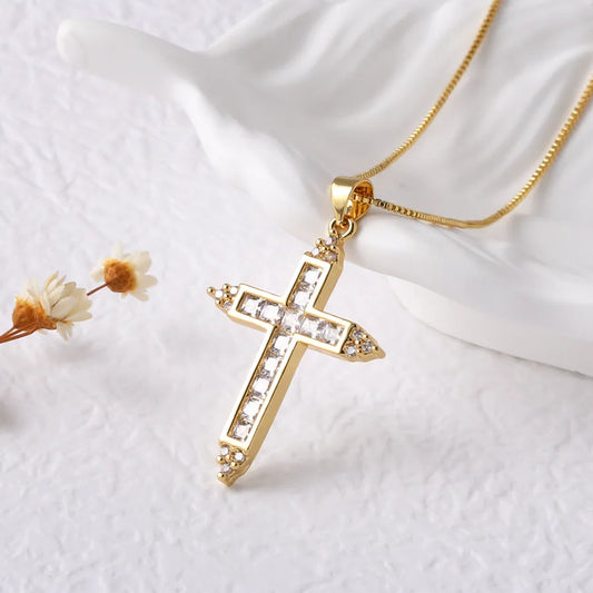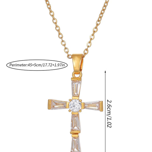 Gold Zircon Cross Pendant Necklace