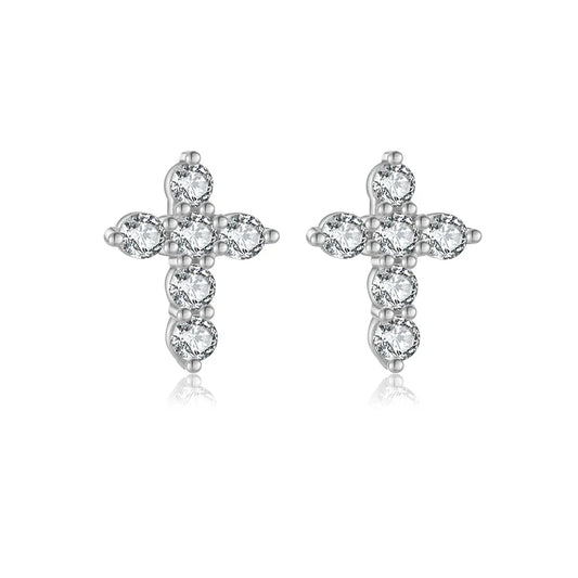 White Gold-Plated Sterling Silver Zircon Cross Stud Earrings