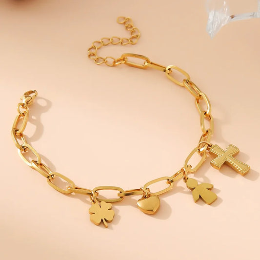 18K Gold Plated Cross Clover Heart Bracelet