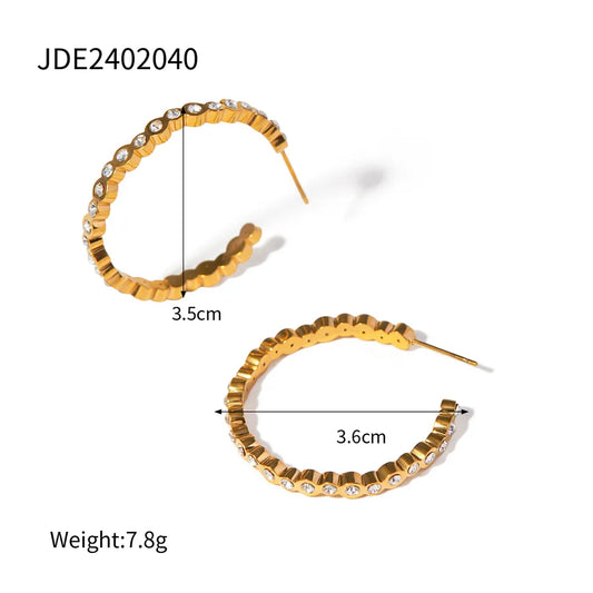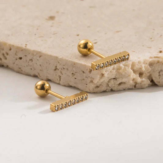 18K Gold Plated Zircon Stainless Steel Stud Earrings