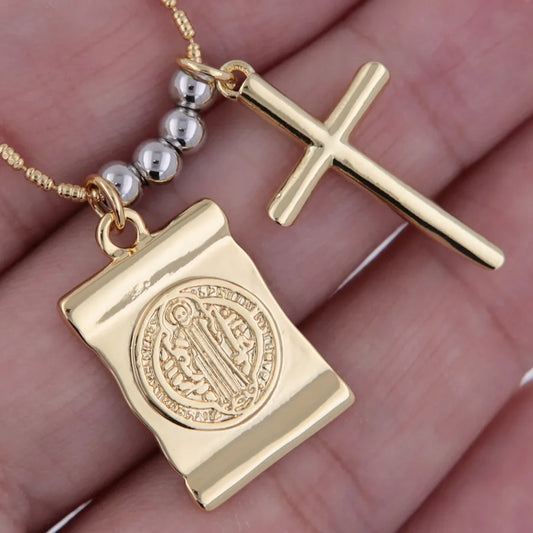 Gold-Plated Cross Beaded Pendant Necklace