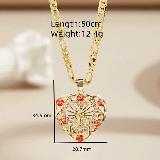 Gold-Plated Virgin Mary Heart Zircon Pendant Necklace