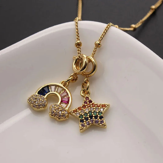 18K Gold Plated Rainbow Star & Heart Zircon Pendant Necklace