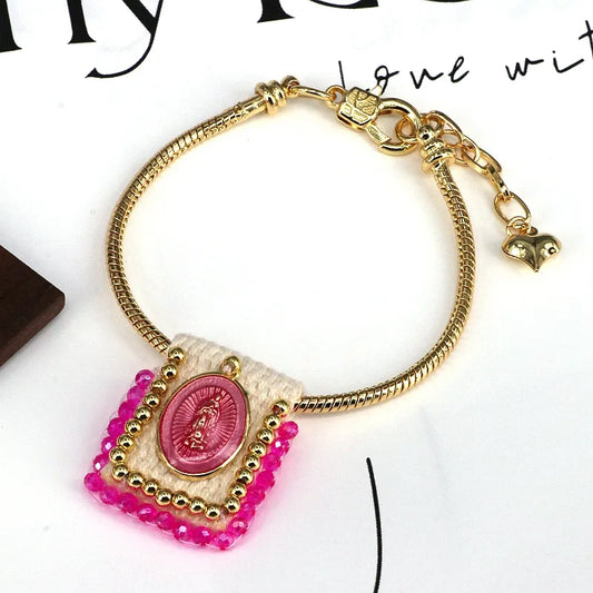 Gold Enamel Braid Virgin Mary Bracelet