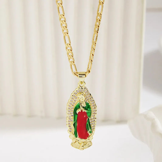 Gold-Plated Our Lady of Guadalupe Pendant Necklace
