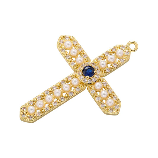 Gold-Plated Pearl & Zircon Cross Pendant Necklace