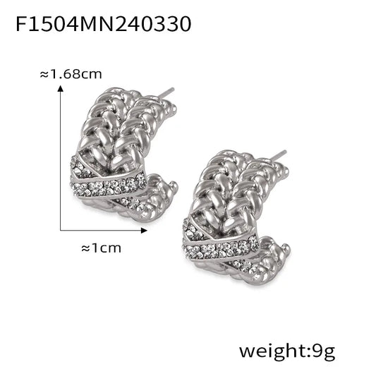 Gold C-Shape Chain Rhinestone Stud Earrings