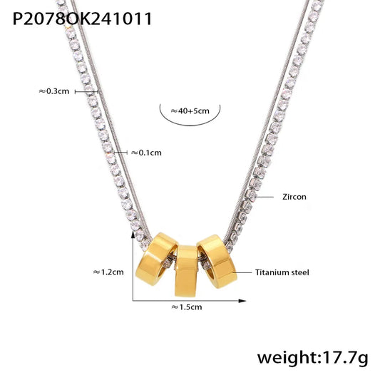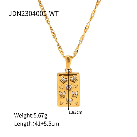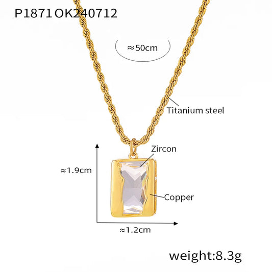 18K Gold Quadrilateral Zircon Pendant Necklace