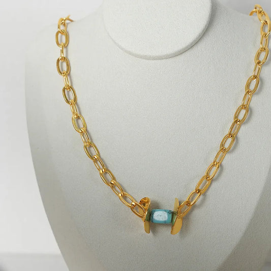 Gold-Plated Titanium Steel & Acrylic Heart & Rectangle Pendant Necklace
