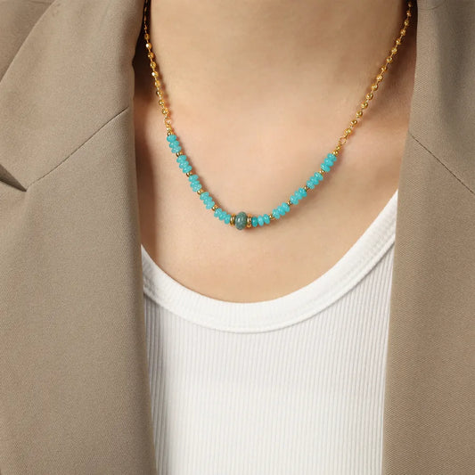 Multicolor Zircon Gold-Plated Steel Bracelet & Necklace