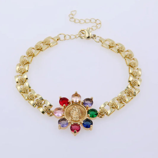 Gold-Plated Virgin Mary Rose Zircon Bracelet