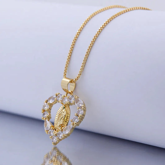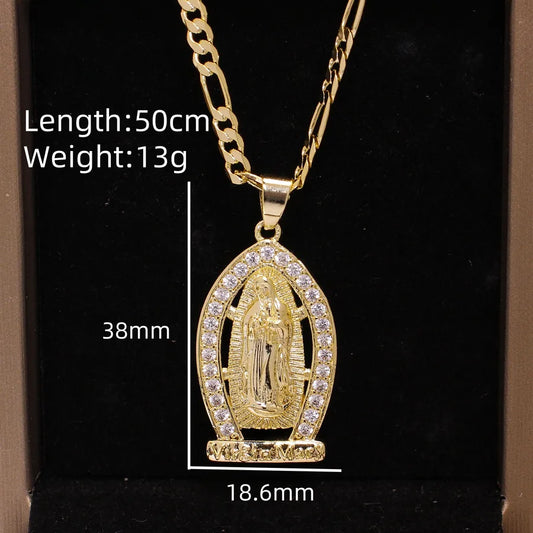 Gold Plated Virgin Mary Zircon Pendant Necklace